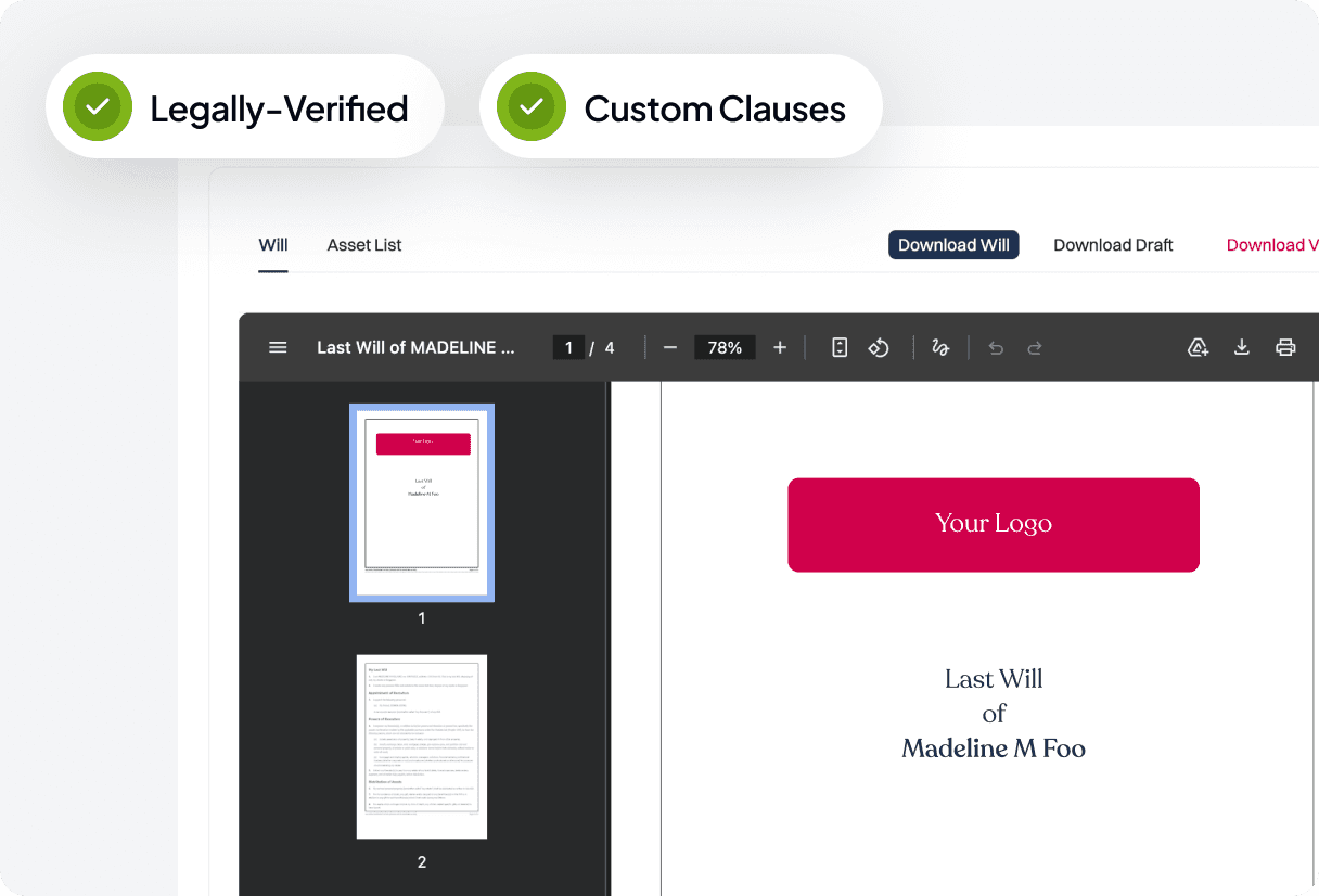 Public Wills lets you generate comprehensive, legally-valid wills in minutes. Every document is accurate, compliant, and ready to present to your client with confidence.